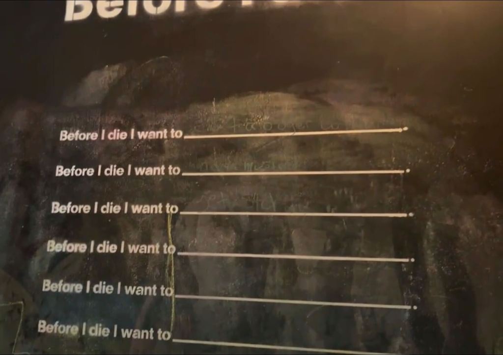 - 留言墙:人们可以把想对逝去的亲人说的话写下来,放在五颜六色的贴纸上面,并贴在这个专属的留言墙上。(下图1)