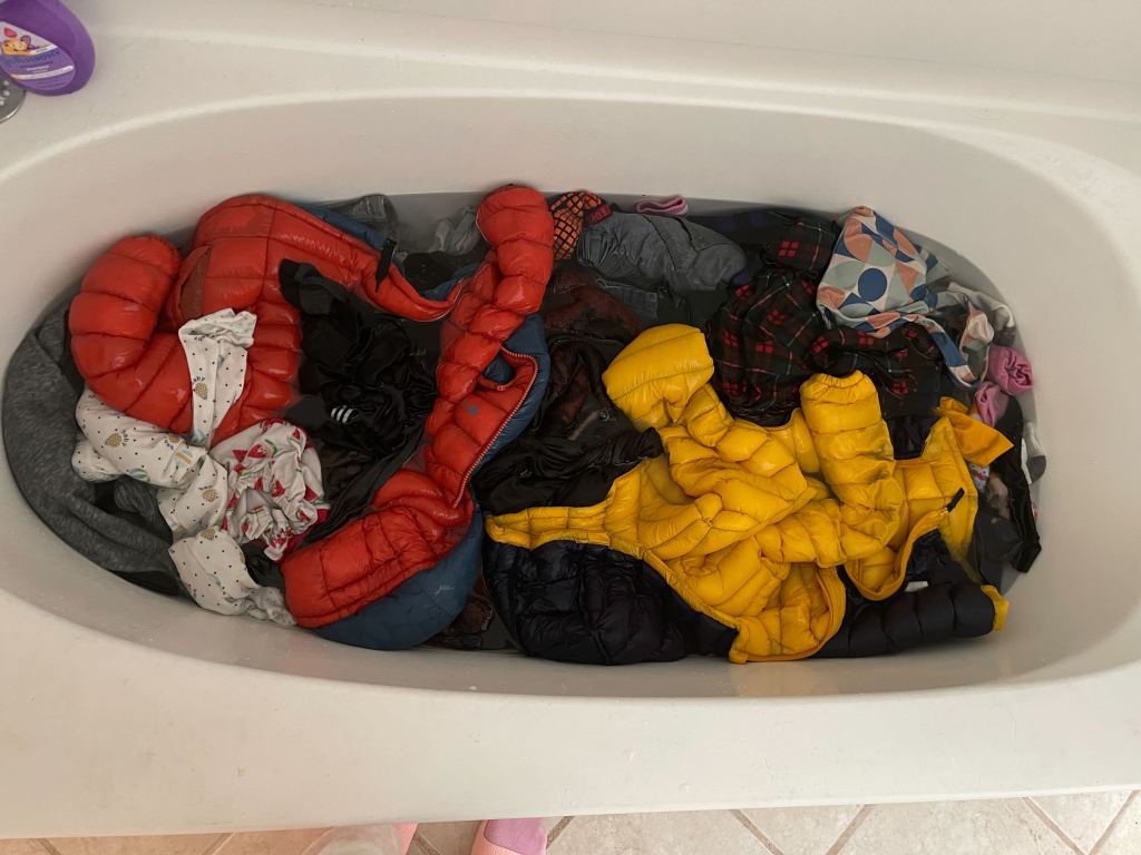 心疼那一大筐衣服,现在也在默默并忧伤地泡在浴缸里。