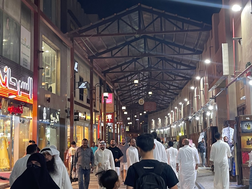 晚上出来的本土阿拉伯人很多,裹着黑色面纱的女士,和穿着白色长裙的男士是标准搭配。这黑白配,在传统华人眼里,可能看起来不是那么吉利的配色。