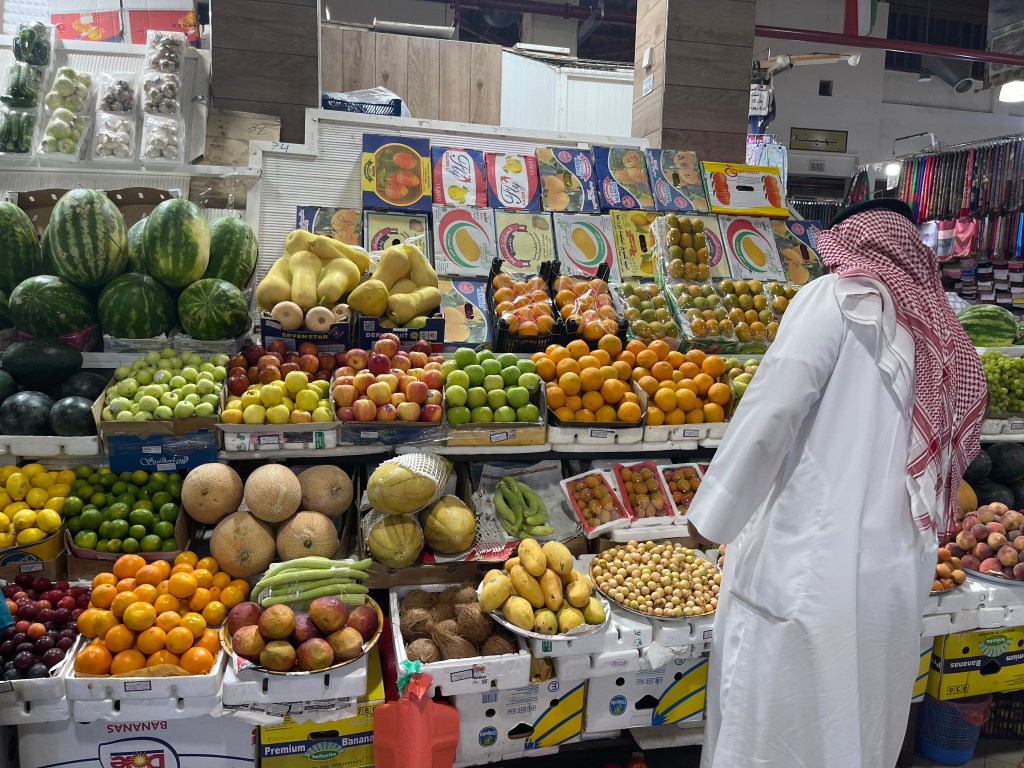 走回家的路上,我们经过了本地的市场。晚上9点多,路上的人开始多了起来。果然是温度降下来了,晚上才开始活跃。 菜市场很多卖水果,卖香料,卖鱼的店,这个时候还正活跃期。 科威特的农业不发达,全都靠进口,我买了一个不知名的果子,那味道很奇特,果肉比胶水还粘。买了十多颗,加一小串小葡萄,他说Seven Fifty。我还以为这一点要7块五科威特币,心里想这么贵。后来才发现他说的是750舍费尔,就是不到1块钱科威特币…