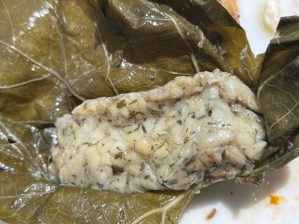 还有很多茄子制品,各种橄榄,沙拉。 其中有一个看起来像粽子的东西,尝了一小口之后,简直绝了,酸到极致,我和先生都不敢再尝第二口。我估计这“粽子”,是酸腌过的粽子,不知道他们本地人的味蕾,如何能承受这么酸的味道。