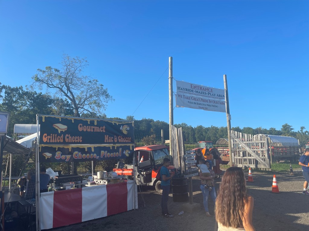 正值万圣节要开始,农场大门旁摆满了金黄的大南瓜,节日气氛浓重。除了农场本身的吸引力,农场带来的人流量,俨然把农场附近变成了一个热闹的小市场。有卖Pizza的,卖香肠的,卖Olives的,卖柠檬汁的,卖热狗的,卖donut 的, 非常有人气。