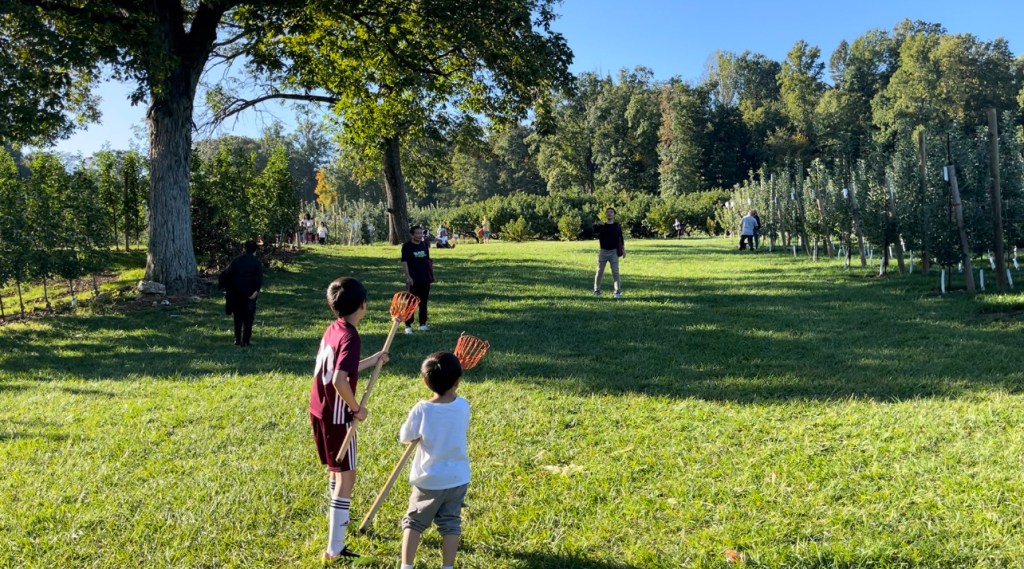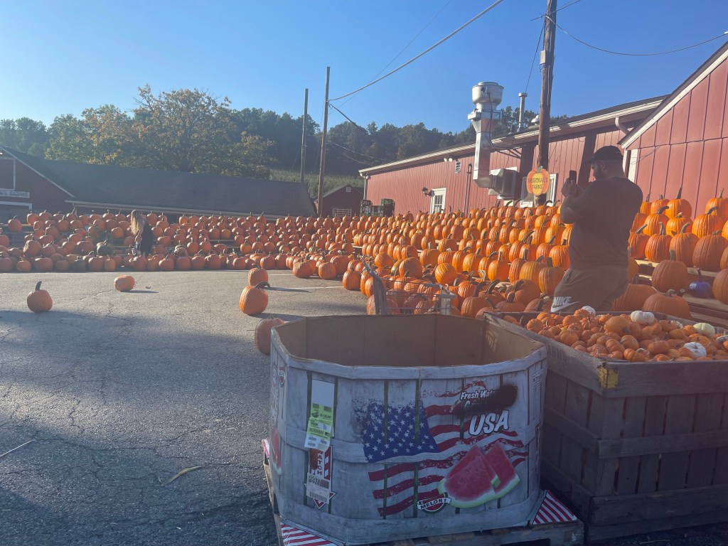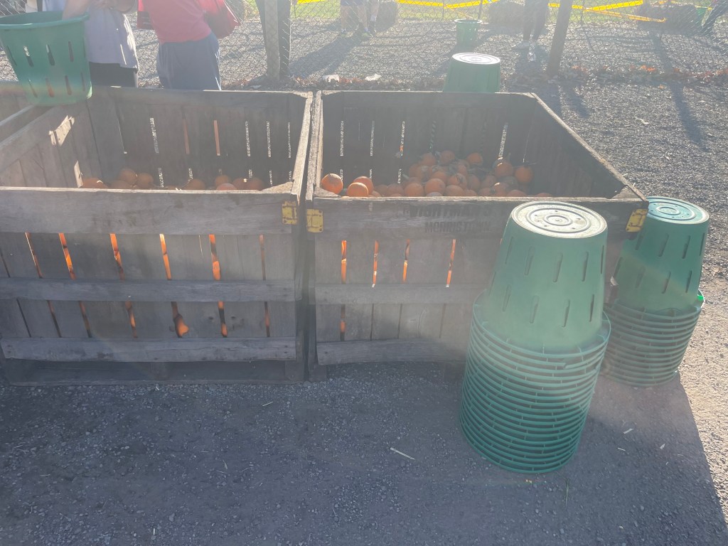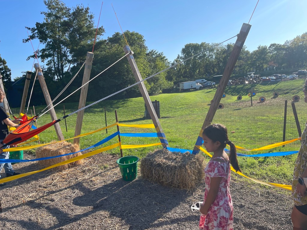弹弓的对面几十米远处,有七八个倒在地上的大桶,如果南瓜射进了大桶里,就会发出响声,然后可以赢得一个大南瓜,或者赢得一件南瓜弹弓的T恤衫。这里有一段Wightman Farm FB的视频可以看到怎么玩这个Pumpkin Slingshot。特别特别有趣,强烈推荐。