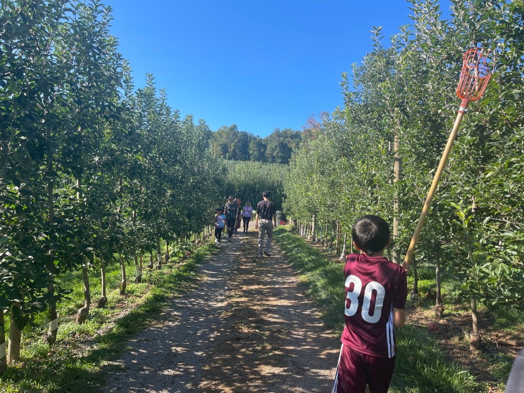 昨天晚上突然想到,现在正好是秋季,很多果子成熟的季节,再晚点冷起来了就不方便去郊游摘果子了。于是今天说走就走,Google上找到了一家离家不远的农场,带着一家老小六口出发了。