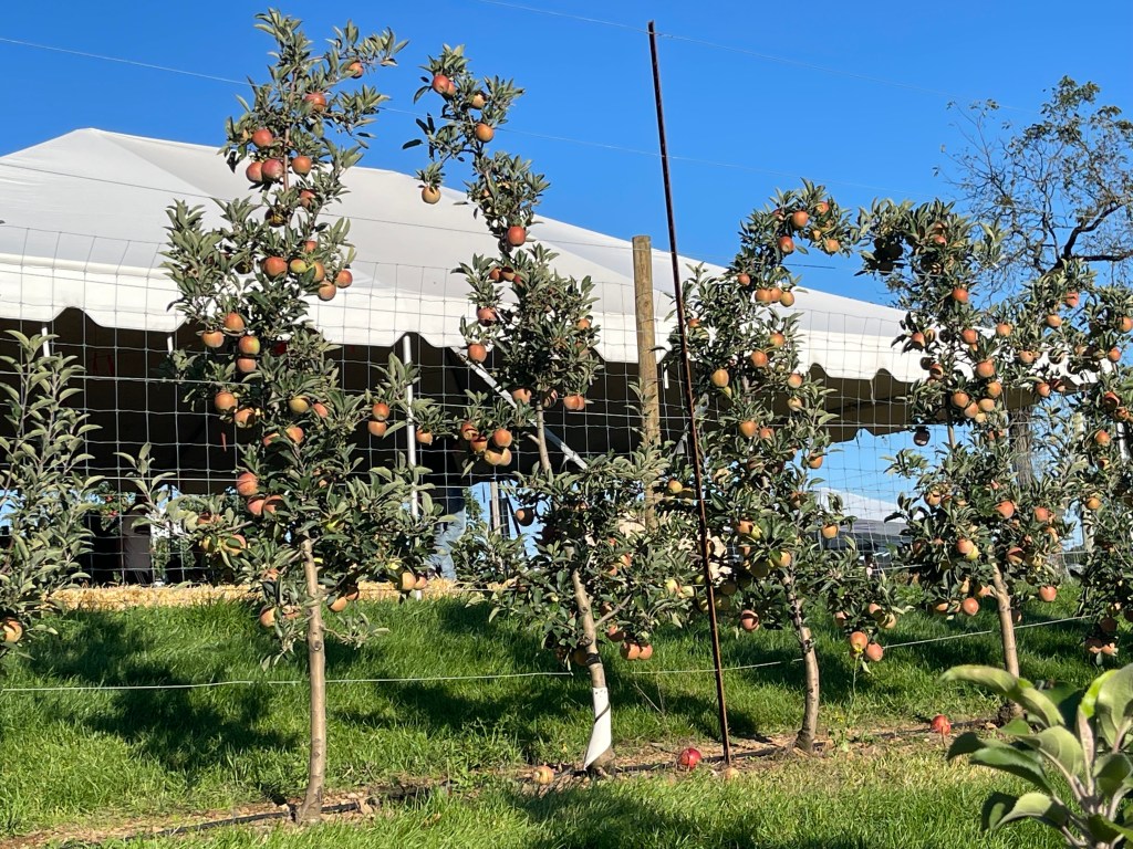 农场入口,映入眼帘的便是大片的苹果树。从来没有见过苹果树的我,说实话看到苹果树的时候有些失望。我心目中的苹果树是一大棵一大棵的,可这里的苹果树,一排一排的,都特别小。