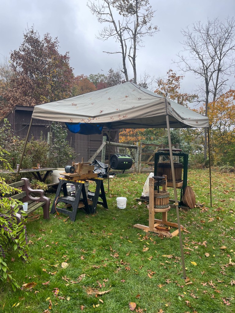 Steve 邀请我们去他们家的主要目的,是去体验一下新鲜压榨的苹果酒。今天他打算压榨两批苹果,一批上午11点开始压榨,第二批下午三点左右开始压榨,他也邀请了一些附近的邻居来参与。
