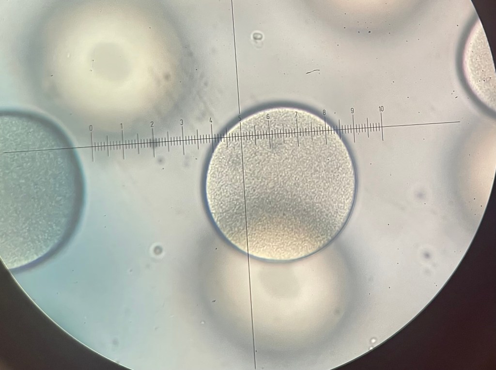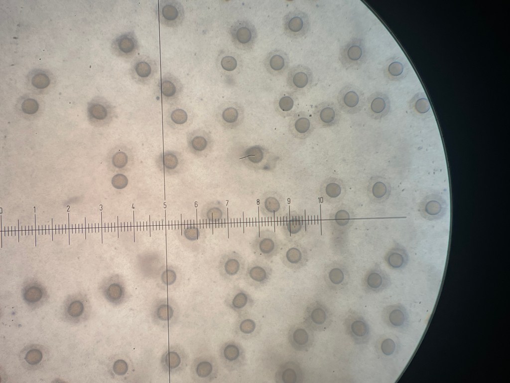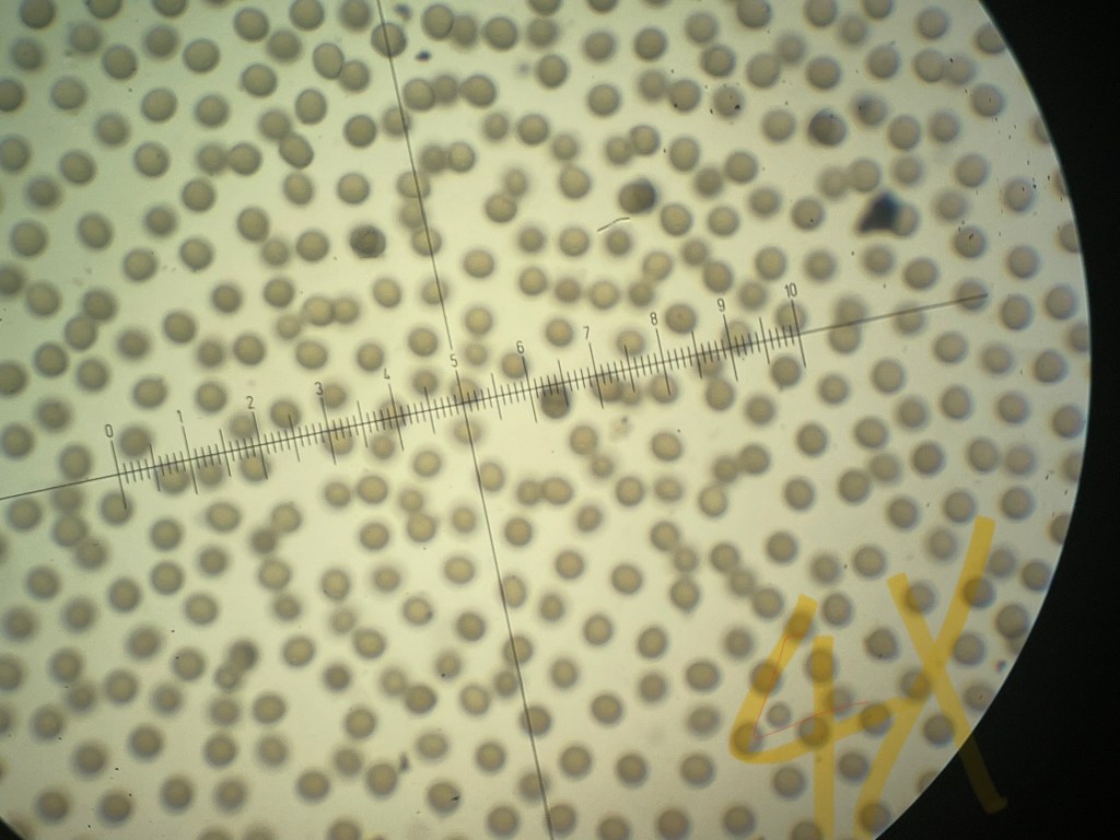 稀释后的卵子液在4倍显微镜下,密密麻麻。