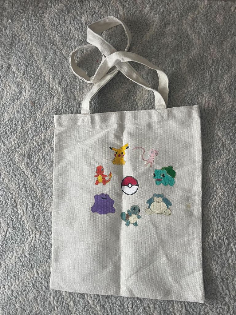 (哆来咪偷偷给我准备的帆布包,先用激光雕刻机印出了几个Pokemon的人物,再自己涂色。感动。)