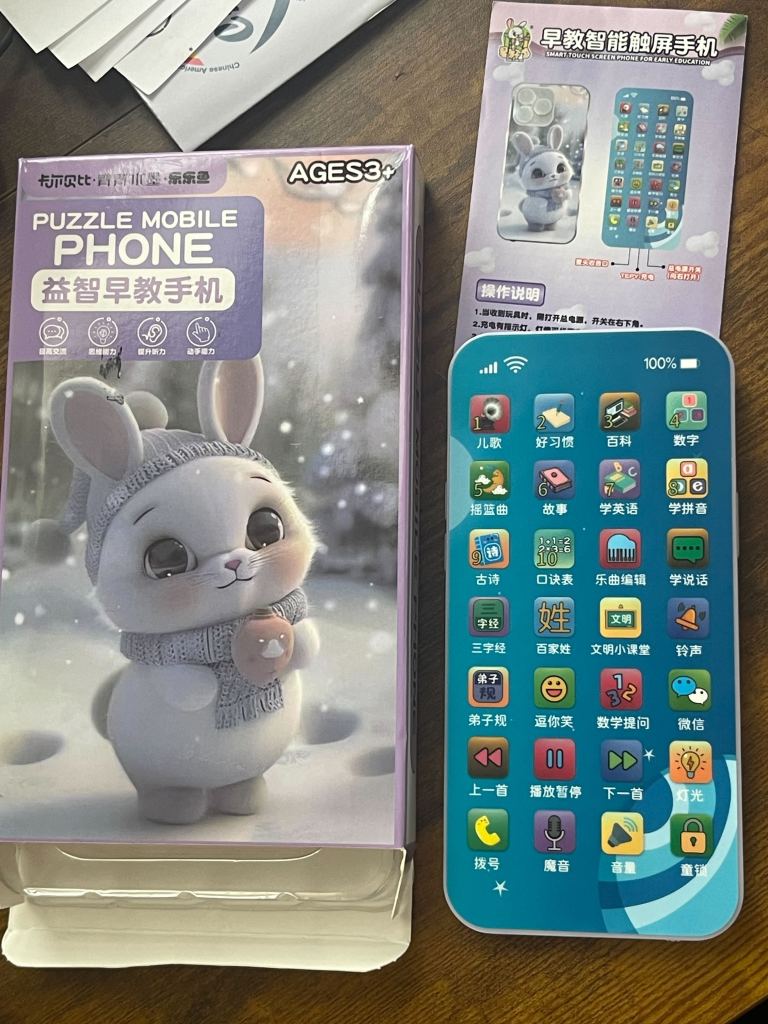 之前我给小妹妹在网上买了个玩具手机。我干脆先把这个送给哆来咪,看他是个啥反应。